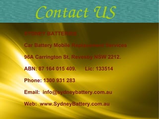 For Your Sydney Batteries 1300 468 931 Call us now to get our best and cheapest car battery price Just tell us the make model year of your car and where your car is located We accept. Mobile Car Battery Replacement Sydney Airport NEED A CAR BATTERY AT THE SYDNEY AIRPORT. Call ABC Mobile Mechanics Sydney the most reliable emergency mobile car mechanic in Sydney now on 1300 674 370.
