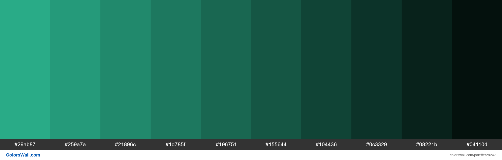 Colorswall On Twitter Shades Of Jungle Green Color 29ab87 Hex 29ab87 259a7a 21896c 1d785f 196751 155644 104436 0c3329 08221b 04110d Colors Palette Https T Co U9stobofqk Https T Co Kvqvekcgja Twitter